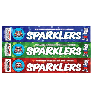 Quality color sparklers on bamboo sticks, that burn for about 30 seconds